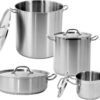 Boczne ściany garnka i pokrywka są wykonane z grubej stali, utrzymującej temperaturę dłużej niż standardowe naczynia ze stali typu 304.