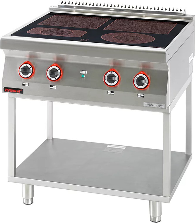 Kuchnia elektryczna ceramiczna 4 pola 2x4kW + 2×2,1kW na podstawie szkieletowej | Kromet 700.KE-4C.T