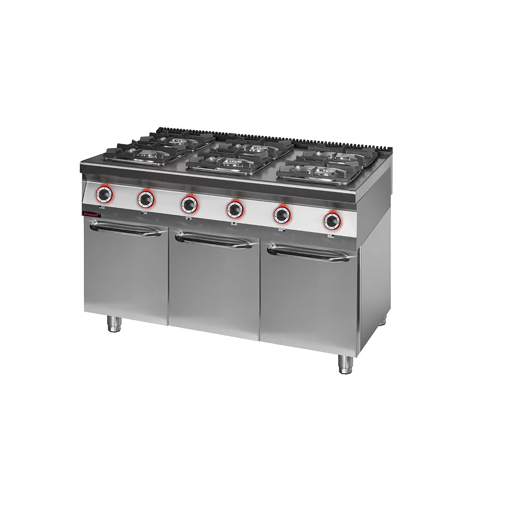 Kuchnia gazowa 6 palnikowa 2×4,5kW + 2×7,5kW + 2×9,0 kW na podstawie szafkowej zamkniętej | Kromet 900.KG-6.S.D