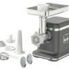 | W zestawie: | 1 nóż ze stali szlachetnej, 4-ramienny, 1 nasadka do przygotowywania "kebbe" (potrawa orientalna), 1 przystawka do ciastek, 1 dociskacz, 1 nasadka do napełniania kiełbas, 3 tarcze perforowane (3 mm, 4, 8 mm, 8 mm)  |