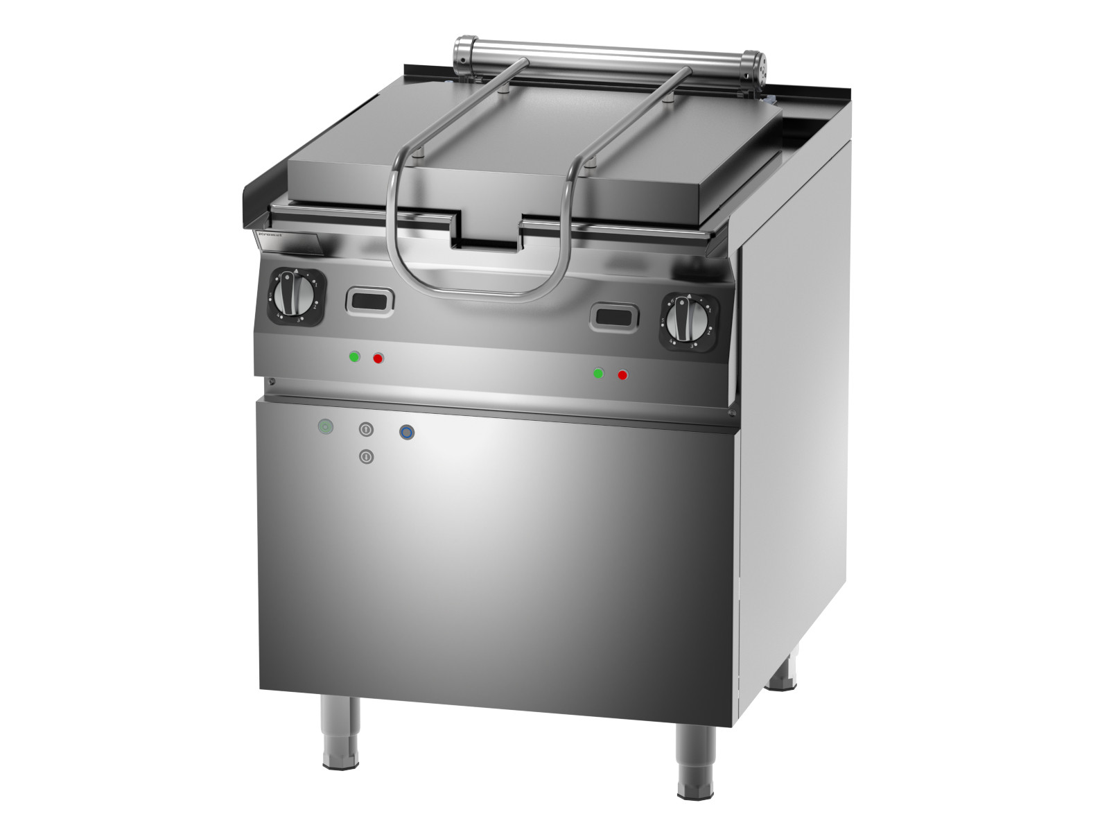Patelnia indukcyjna wykonana jest z wysokogatunkowych stali nierdzewnych. Trójwarstwowe dno misy z drzeniem aluminiowym zapewnia równomierny rozkład temperatur. Misa tłoczona z promieniami wewnątrz. Automatyczny przechył misy. Wylewka doprowadzająca wodę do misy wyrobu za pomocą elektrozaworu.