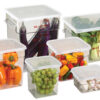 Gładka, zapobiegająca przywieraniu powierzchnia wewnętrzna sprzyja łatwemu zmywaniu. Nie reagują z żywnością, minimalizując potencjalnie niebezpieczne reakcje chemiczne lub kwasowe. Szorstkie dno zmniejsza ryzyko ewentualnego uszkodzenia pojemnika przez zadrapanie przyrządami kuchennymi. Możliwość sztaplowania-układanie w stosy oszczędza miejsce. Łatwe do odczytania, nadrukowane na zewnątrz podziałki ułatwiają szybki remanent. Gdy nie są w użyciu, ustawia się je pionowo tak aby zajmowały mało miejsca.