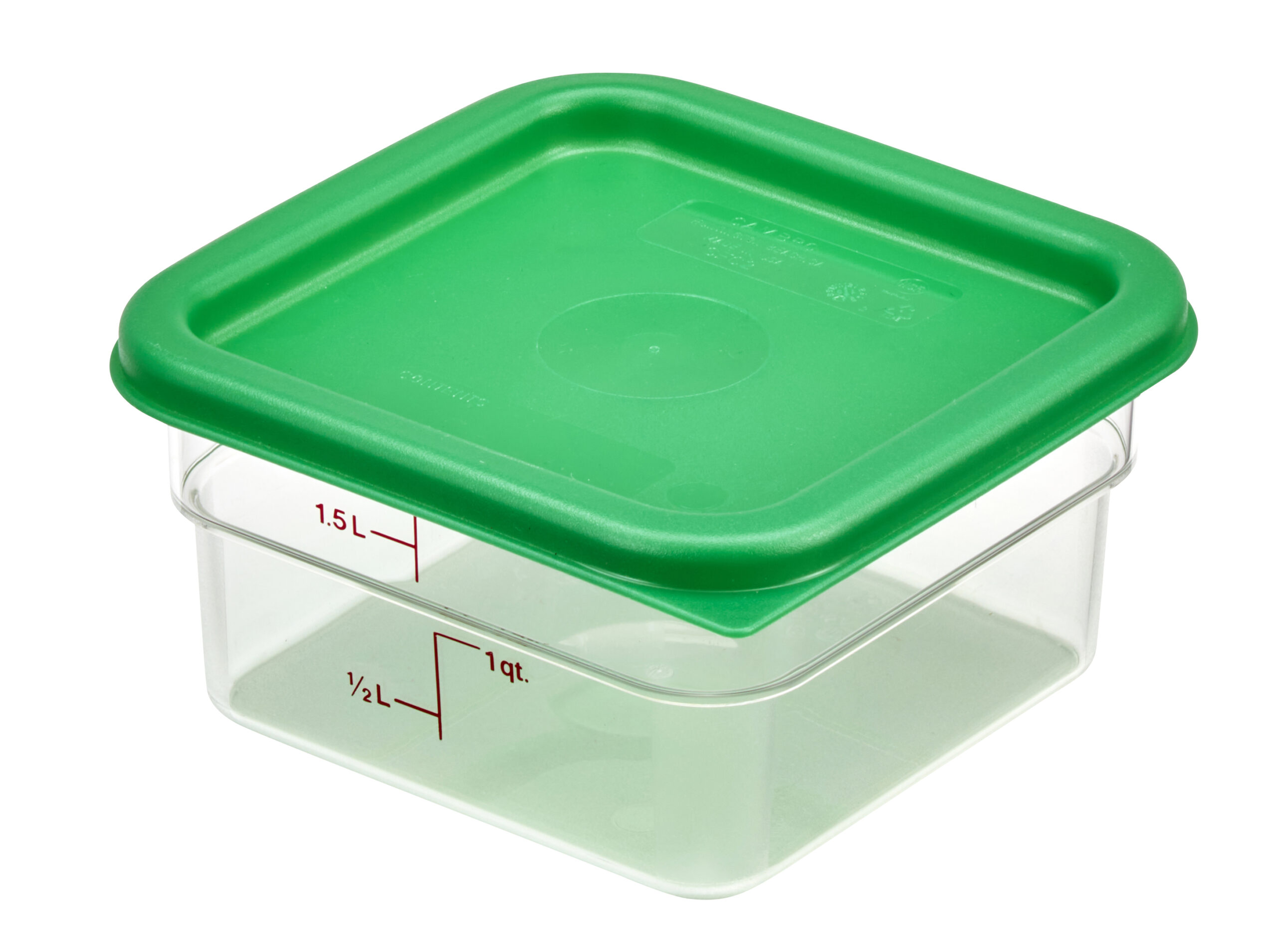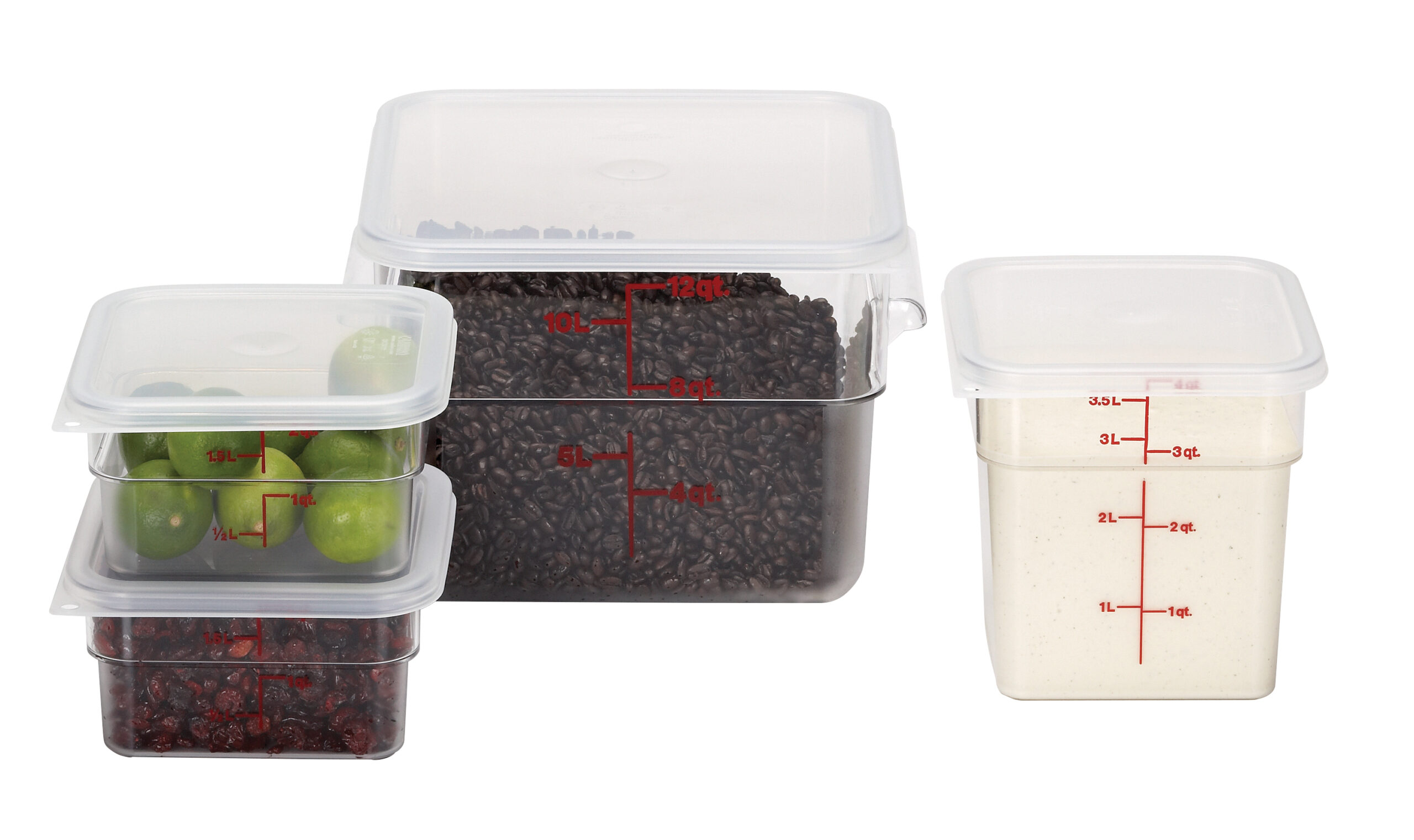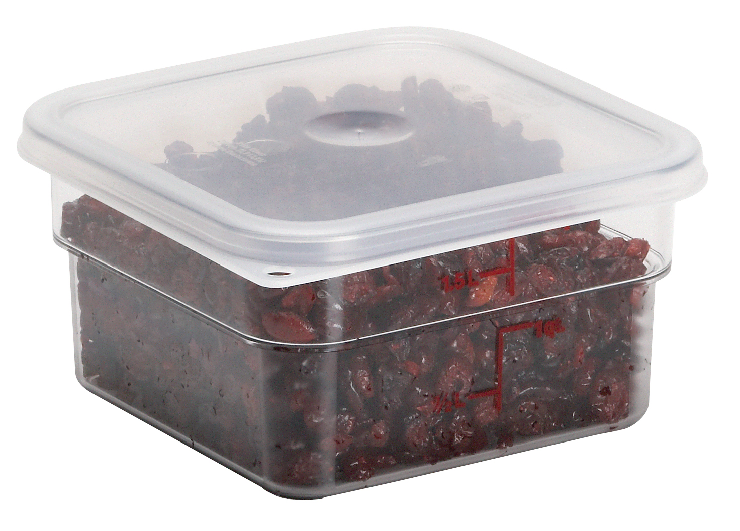 Pojemnik jest przeznaczony do przechowywania żywności. Kwadratowy kształt zwiększa pojemność magazynu ponieważ pozwala wykorzystać przestrzeń o 33% lepiej niż pojemniki okrągłe. Przezroczysty poliwęglan pozwala zajrzeć do środka i szybko zidentyfikować zawartość pojemnika. Pojemnik wykonany jest z poliwęglanu, tworzywa bardzo odpornego na uszkodzenia mechaniczne i wytrzymującego temperatury od -40˚C do 99˚C.