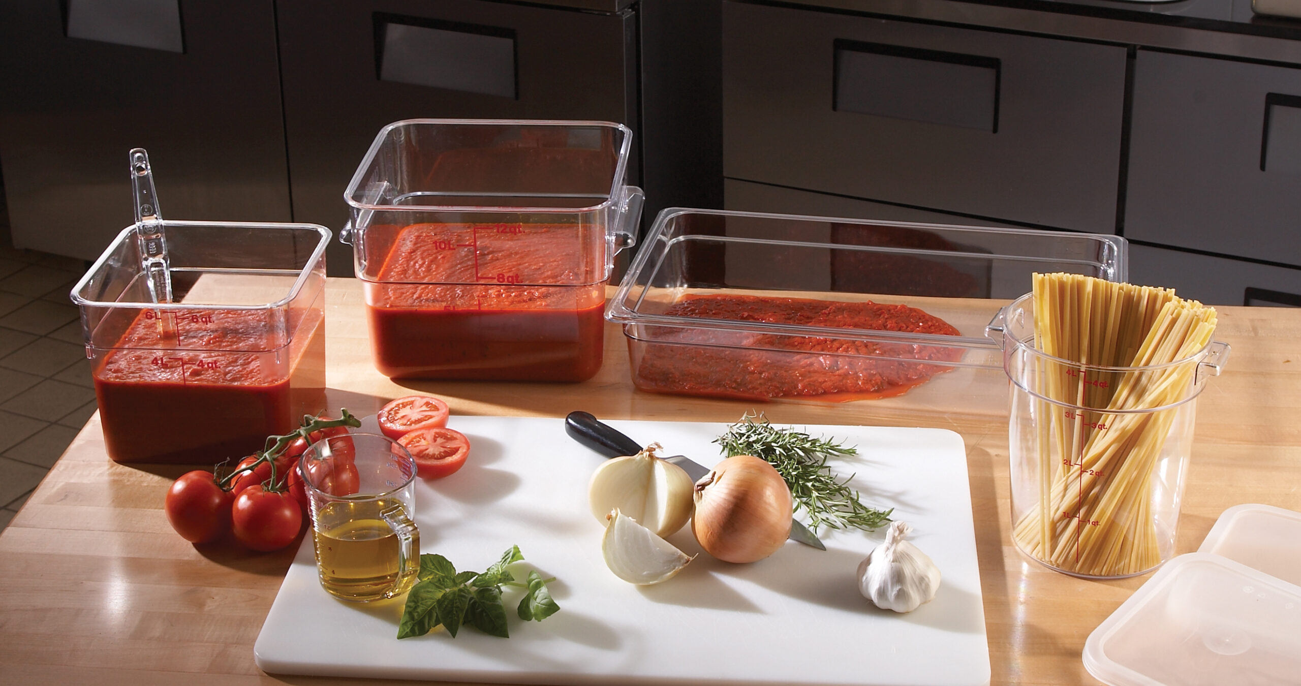 Gładka, zapobiegająca przywieraniu powierzchnia wewnętrzna sprzyja łatwemu zmywaniu. Nie reagują z żywnością, minimalizując potencjalnie niebezpieczne reakcje chemiczne lub kwasowe. Szorstkie dno zmniejsza ryzyko ewentualnego uszkodzenia pojemnika przez zadrapanie przyrządami kuchennymi. Możliwość sztaplowania-układanie w stosy oszczędza miejsce. Łatwe do odczytania, nadrukowane na zewnątrz podziałki ułatwiają szybki remanent. Gdy nie są w użyciu, ustawia się je pionowo tak aby zajmowały mało miejsca.