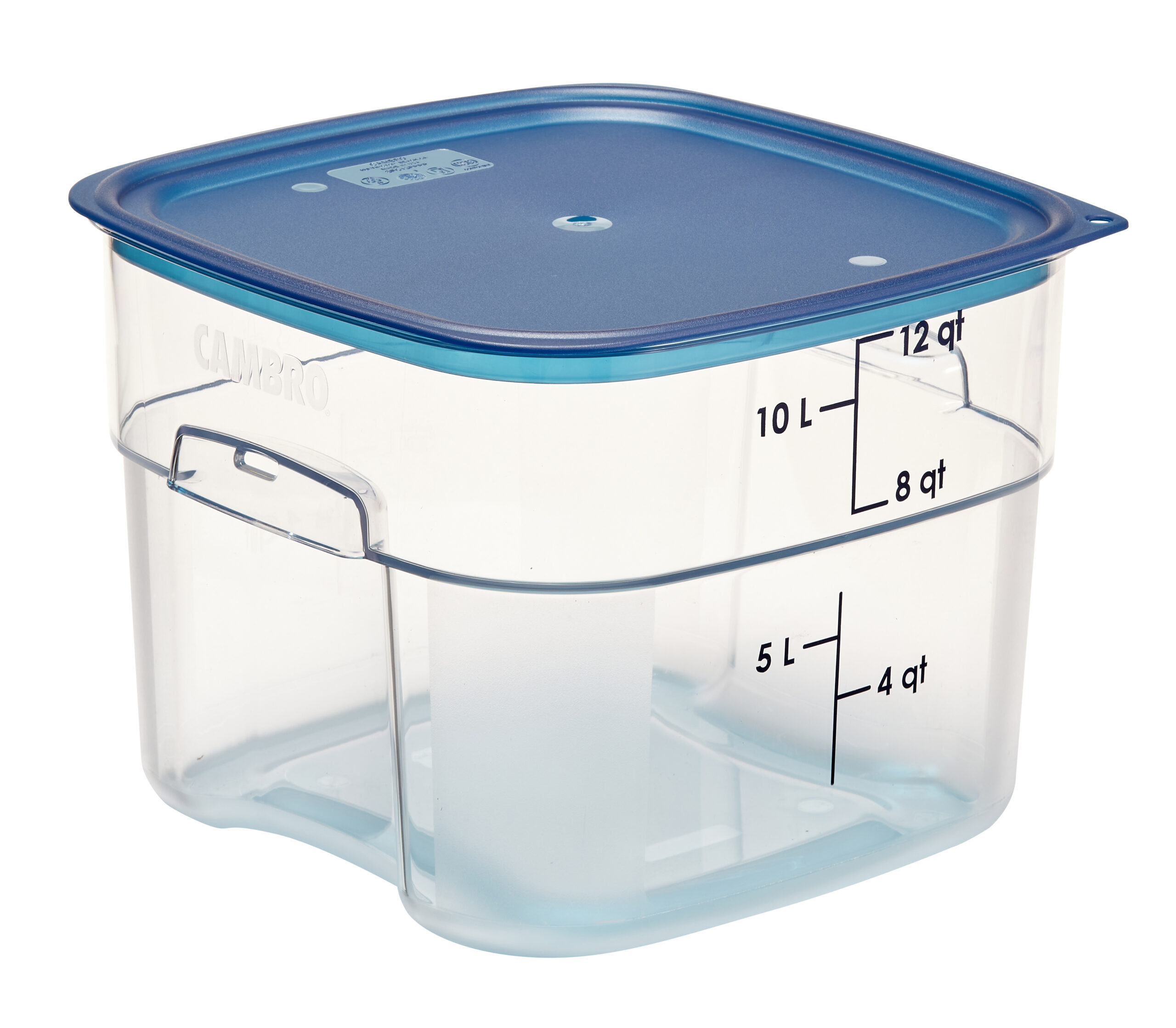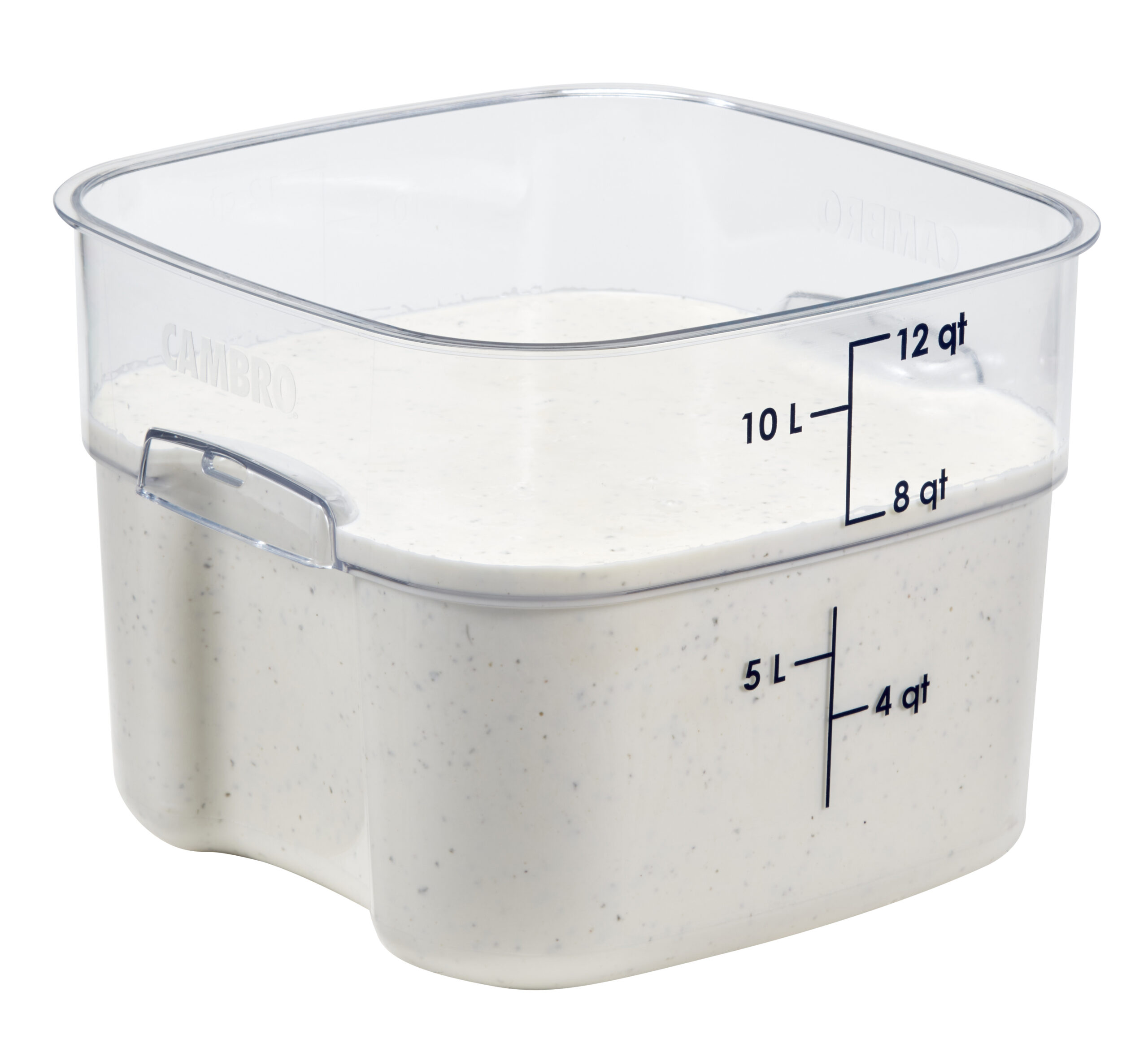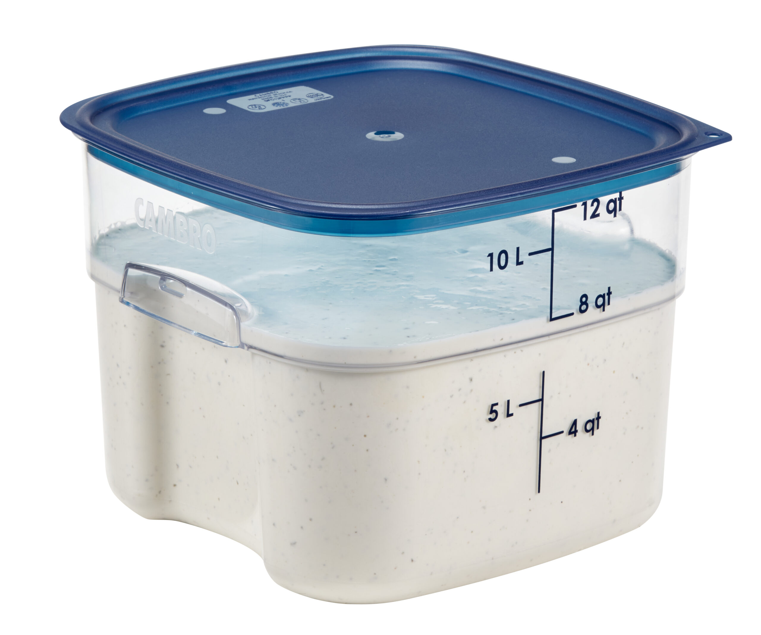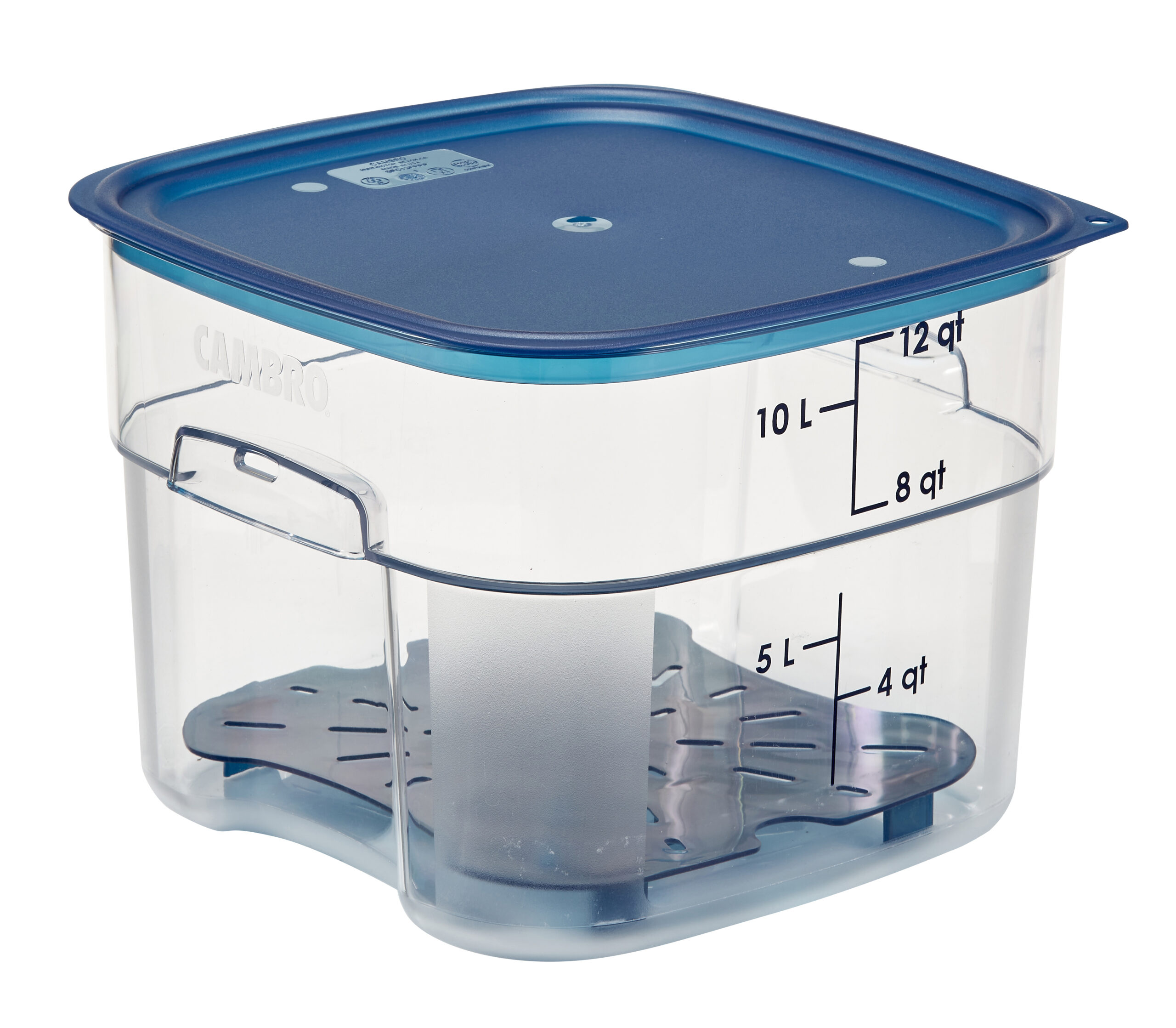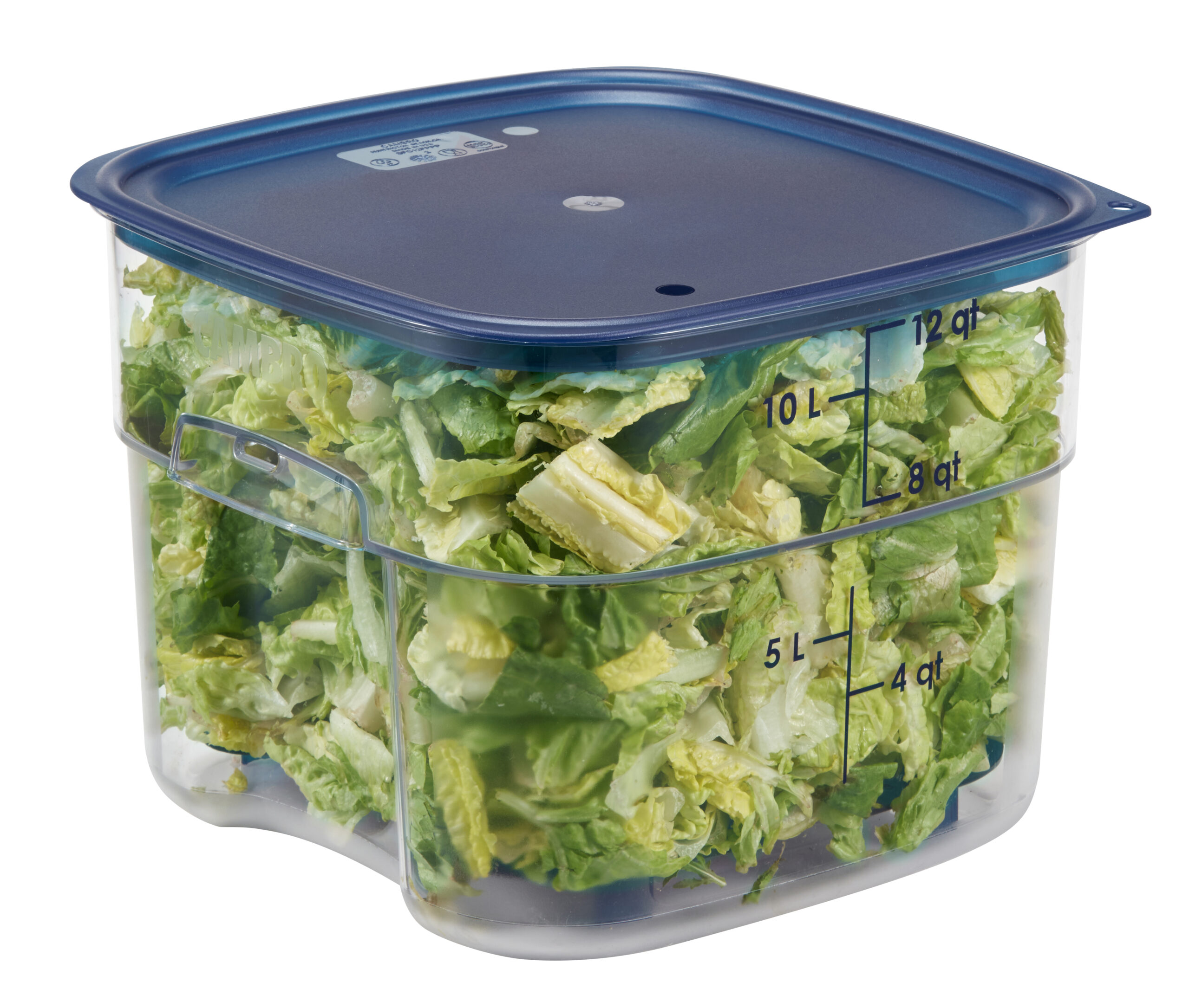 Zrewolucjonizuj swoją kuchnię dzięki nowym pojemnikom na żywność z serii CamSquares® FreshPro, wykonanym z wytrzymałego materiału Camwear®. Każdy rozmiar posiada wbudowane, wcięte uchwyty, dzięki czemu pojemniki zajmują mniej miejsca niż tradycyjne opcje przechowywania. Zaokrąglone narożniki FreshPro i faktura na powierzchni umożliwiają bezpieczne nalewanie ze wszystkich stron oraz łatwiejsze przenoszenie. System kodowania kolorami z odpowiadającymi pokrywkami, drenażem i czytelnymi podziałkami zapewnia szybki przegląd zapasów i ułatwia użytkowanie, co jest niezbędne w szybko działających kuchniach. Wygodna pokrywa Easy Seal dokładnie przylega i chroni zawartość przed krzyżowym zanieczyszczeniem, jednocześnie przedłużając trwałość składników. Opcjonalne półki drenażowe pomagają utrzymać świeżość składników, unikając kontaktu z sokami. Przenieś przygotowywanie i przechowywanie żywności na wyższy poziom dzięki wydajnej serii FreshPro od CamSquares!