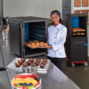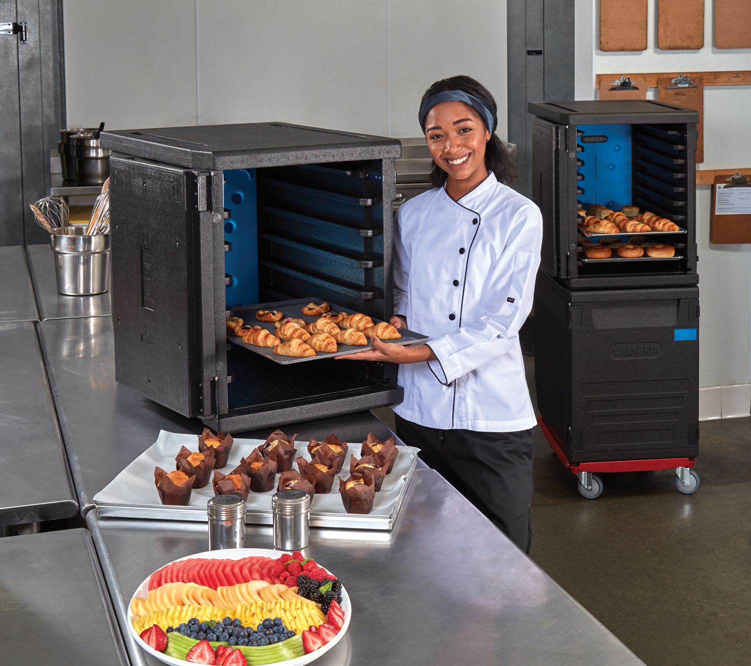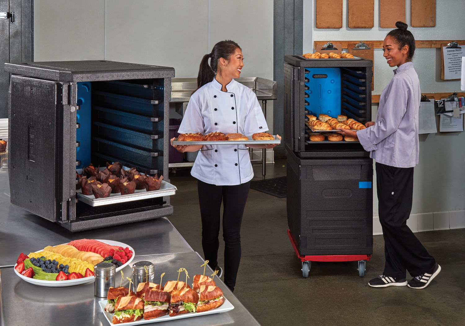 Pojemnik termoizolacyjny wykonany jest ze spienionego polipropylenu (EPP), który jest wyjątkowo lekki a jednocześnie ma bardzo dobre właściwości termoizolacyjne, utrzymuje temperaturę do 4 godzin. Prezentowany model służy do transportu blach i skrzynek piekarniczych o rozmiarach 40 x 60 cm. Wyposażony jest w 6 wytłoczonych z formy prowadnic, pomiędzy którymi jest 6 cm odstępu. Cambro oferuje bardzo szeroką gamę pojemników ze spienionego polipropylenu, które możemy dostosować do ilości i rodzaju transportowanej żywności.