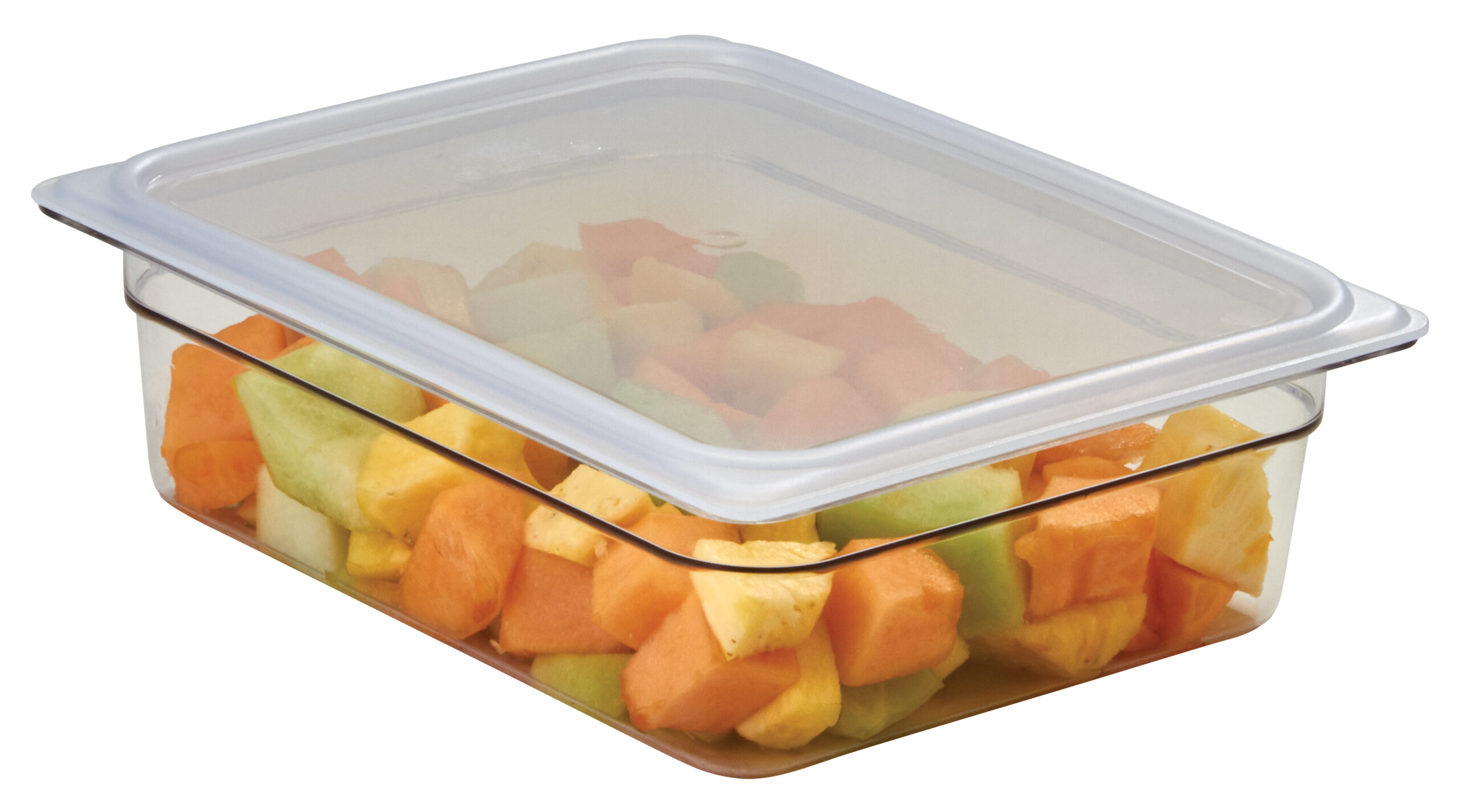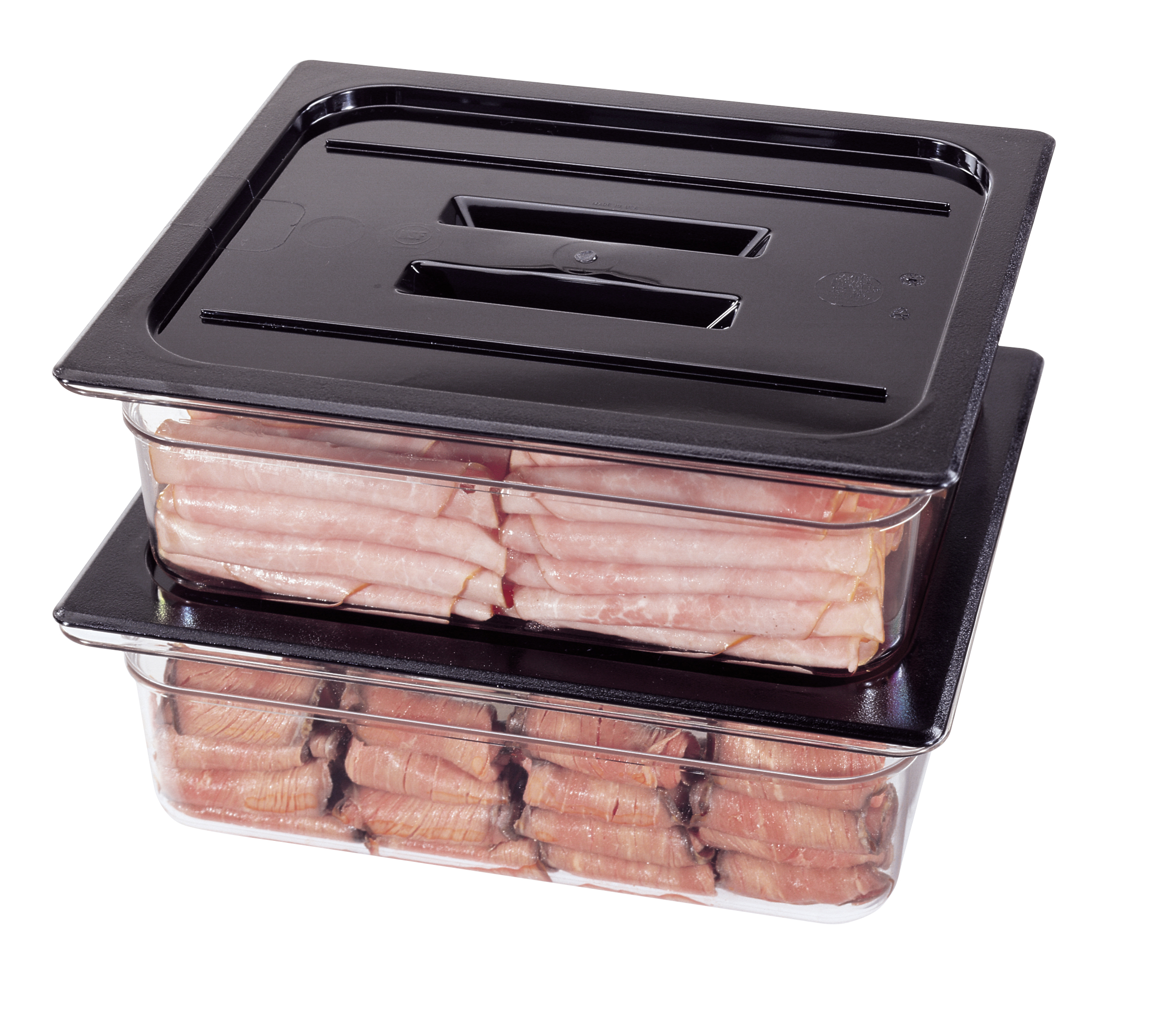 Pojemnik GN jest przeznaczony do przechowywania, transportowania i podawania żywności. Przezroczysty pojemnik wykonany z poliwęglanu, tworzywa bardzo odpornego na uszkodzenia mechaniczne i wytrzymującego temperatury od -40˚C do 99˚C. Gładka, zapobiegająca przywieraniu powierzchnia wewnętrzna sprzyja łatwemu zmywaniu. Nie reagują z żywnością, minimalizując potencjalnie niebezpieczne reakcje chemiczne lub kwasowe. Szorstkie dno zmniejsza ryzyko ewentualnego uszkodzenia pojemnika przez zadrapanie przyrządami kuchennymi. Jednolity kołnierz gwarantuje idealne dopasowanie do stołów przygotowawczych i barów spożywczych.