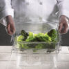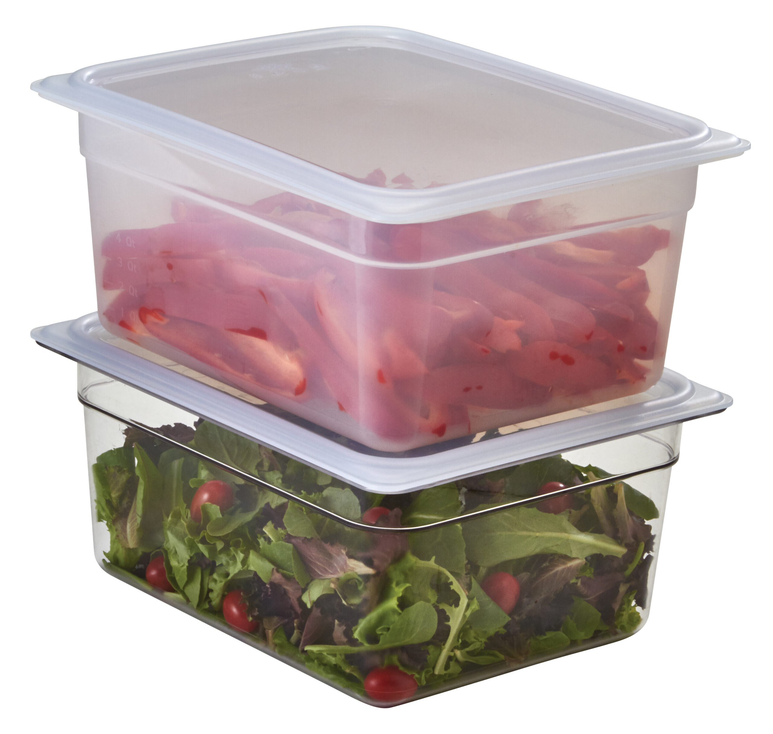 Pojemnik GN jest przeznaczony do przechowywania, transportowania i podawania żywności. Przezroczysty pojemnik wykonany z poliwęglanu, tworzywa bardzo odpornego na uszkodzenia mechaniczne i wytrzymującego temperatury od -40˚C do 99˚C. Gładka, zapobiegająca przywieraniu powierzchnia wewnętrzna sprzyja łatwemu zmywaniu. Nie reagują z żywnością, minimalizując potencjalnie niebezpieczne reakcje chemiczne lub kwasowe. Szorstkie dno zmniejsza ryzyko ewentualnego uszkodzenia pojemnika przez zadrapanie przyrządami kuchennymi. Jednolity kołnierz gwarantuje idealne dopasowanie do stołów przygotowawczych i barów spożywczych.