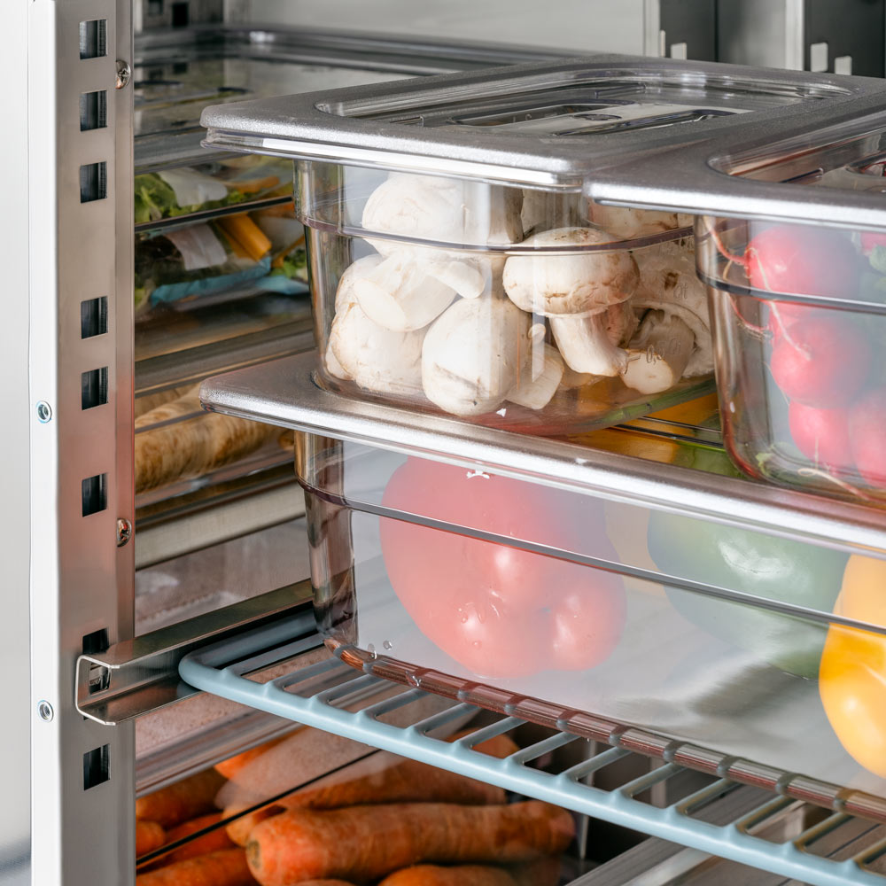 Stół chłodniczy z rantem, 3-drzwiowy, agregat po prawej stronie, V 417 l | Stalgast 831360
