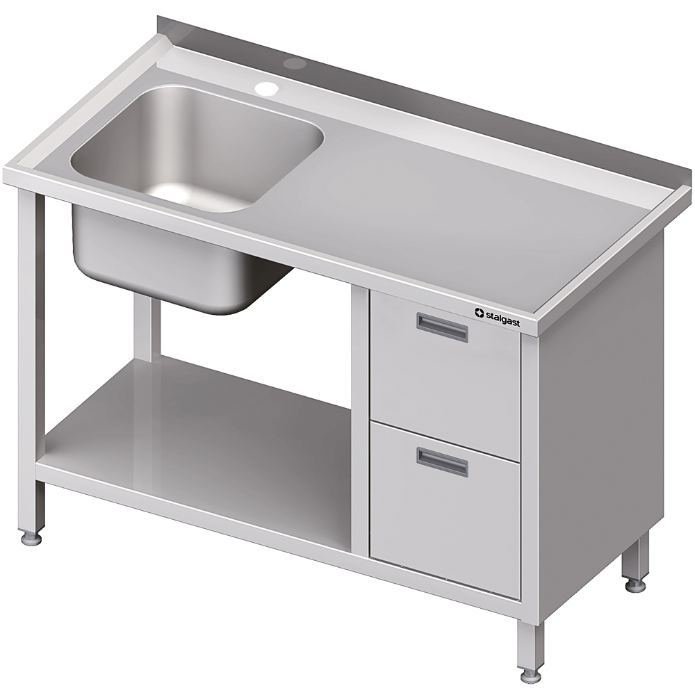 Stół ze zlewem 1-komorowym (L), z blokiem dwóch szuflad i półką | Stalgast