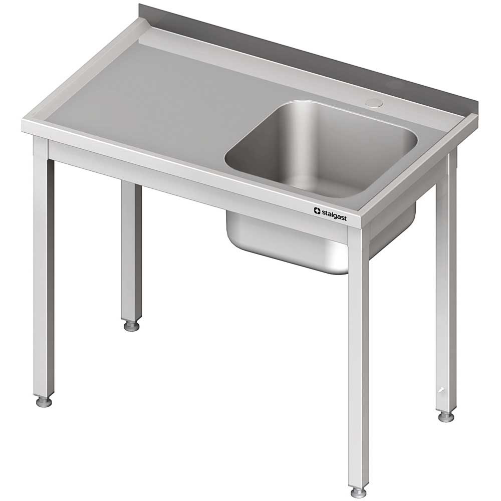 Stół ze zlewem 1-komorowym (P), bez półki, skręcany | Stalgast
