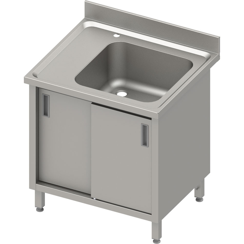 Stół ze zlewem 1-komorowym (P), drzwi suwane, blat tłoczony, rant puszkowy 100x15x10 | Stalgast