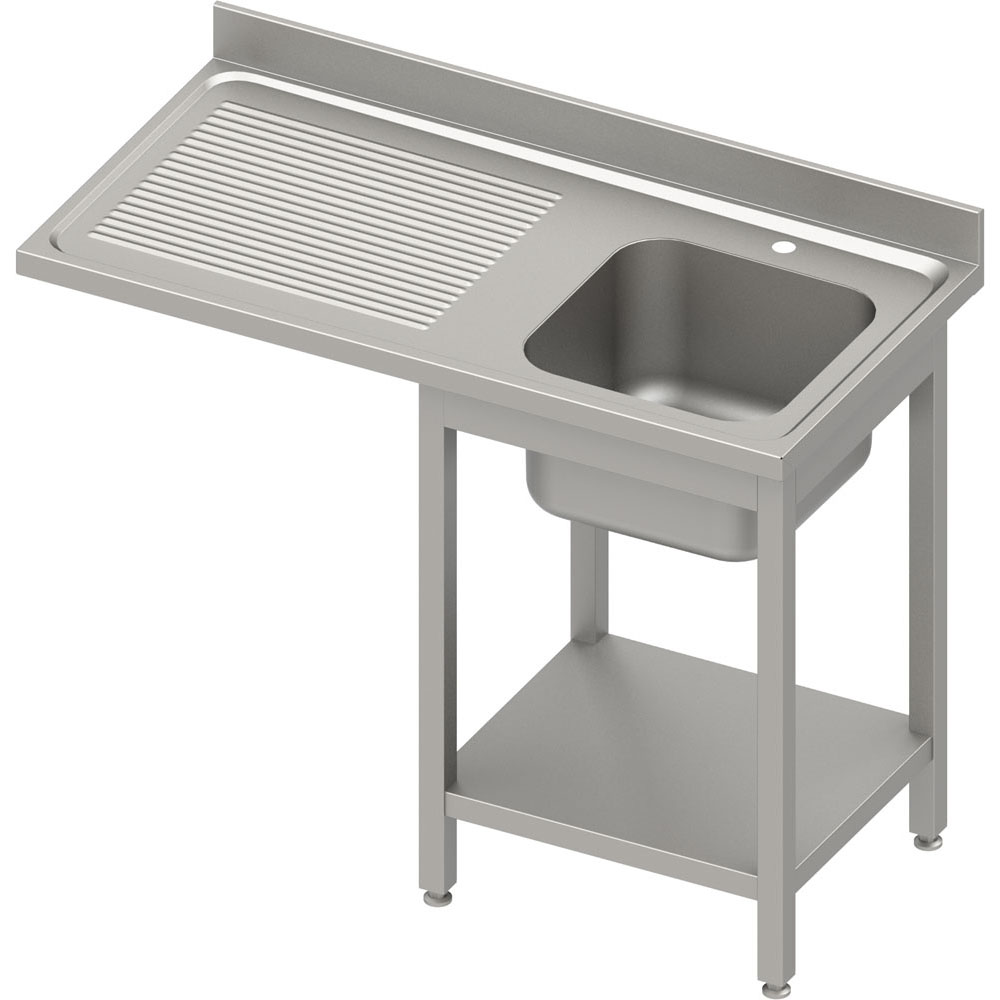 Stół ze zlewem 1-komorowym (P) i miejscem na lodówkę lub zmywarkę, skręcany, blat tłoczony, rant puszkowy 100x15x10 | Stalgast