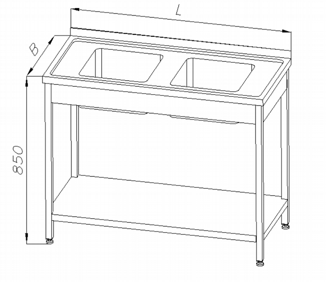 Stół ze zlewem 2-kom (L) i półką | Egaz E 2240 L