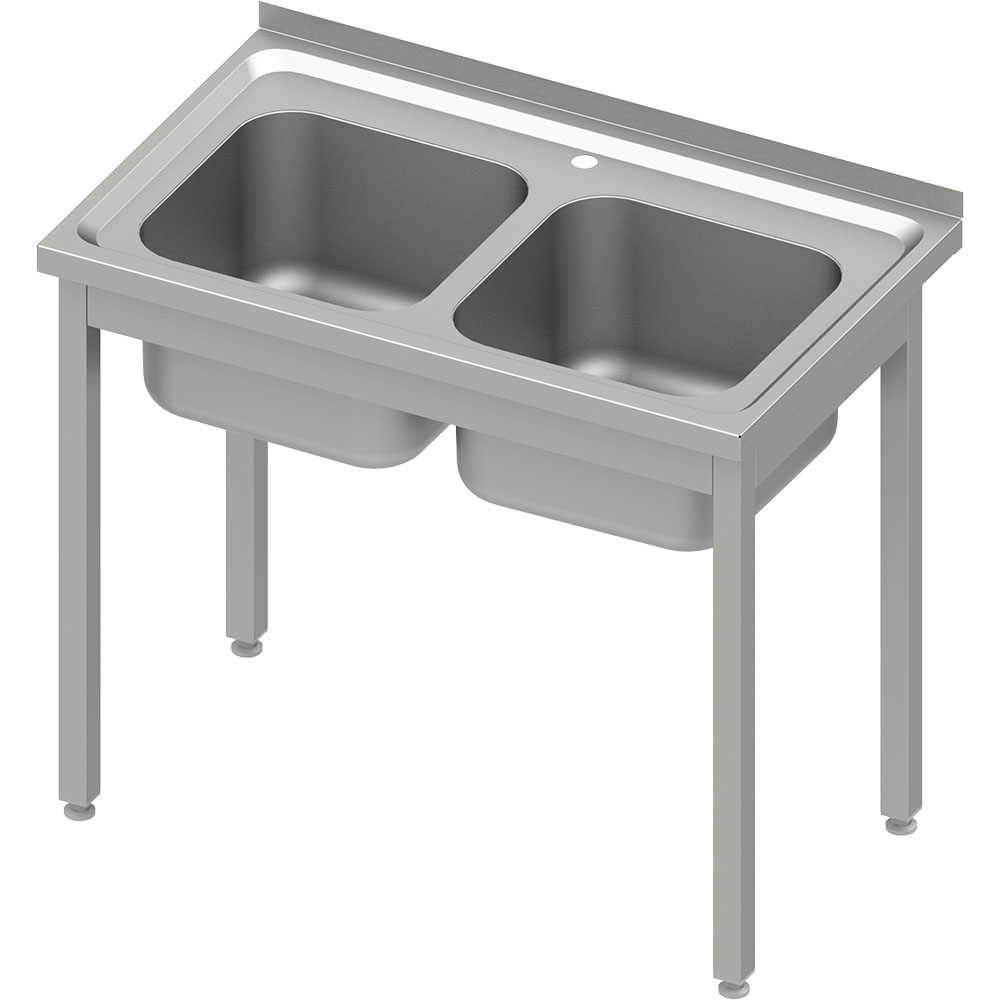 Stół ze zlewem 2-komorowym, bez półki, skręcany, blat tłoczony | Stalgast