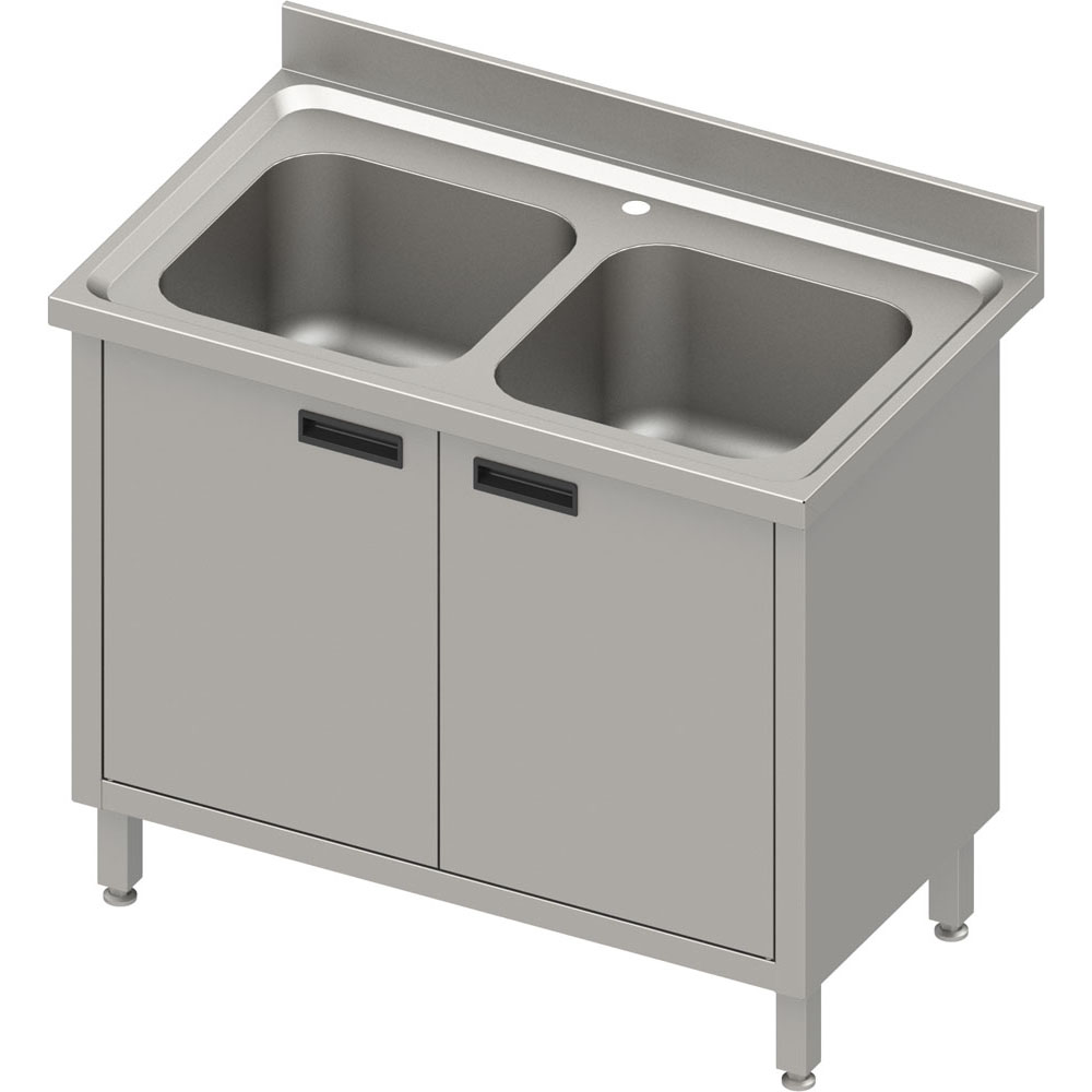 Stół ze zlewem 2-komorowym, drzwi skrzydłowe, blat tłoczony, rant puszkowy 100x15x10 | Stalgast
