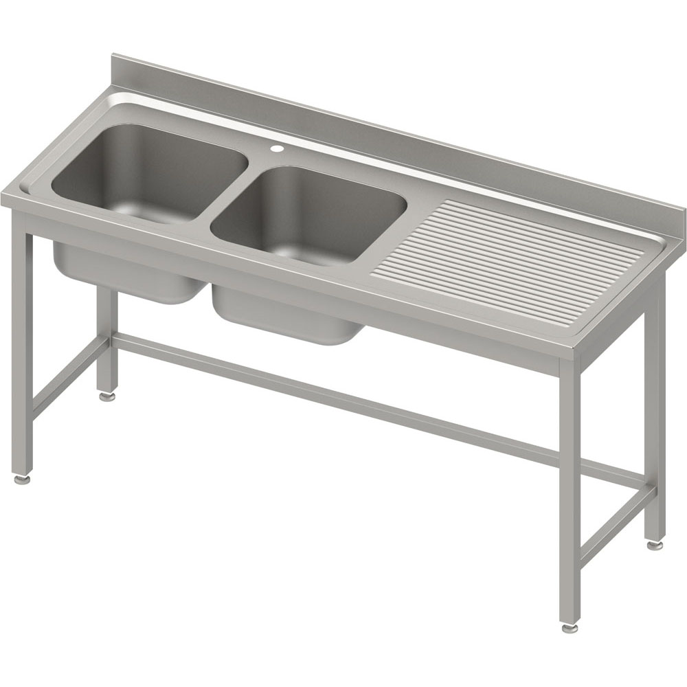 Stół ze zlewem 2-komorowym (L), bez półki, blat tłoczony, rant puszkowy 100x15x10 | Stalgast