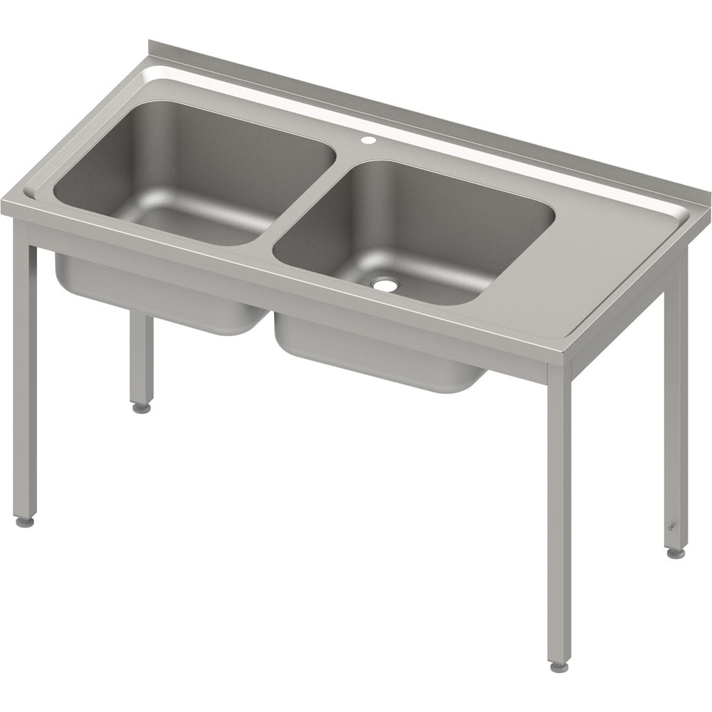Stół ze zlewem 2-komorowym (L), bez półki, skręcany, blat tłoczony | Stalgast