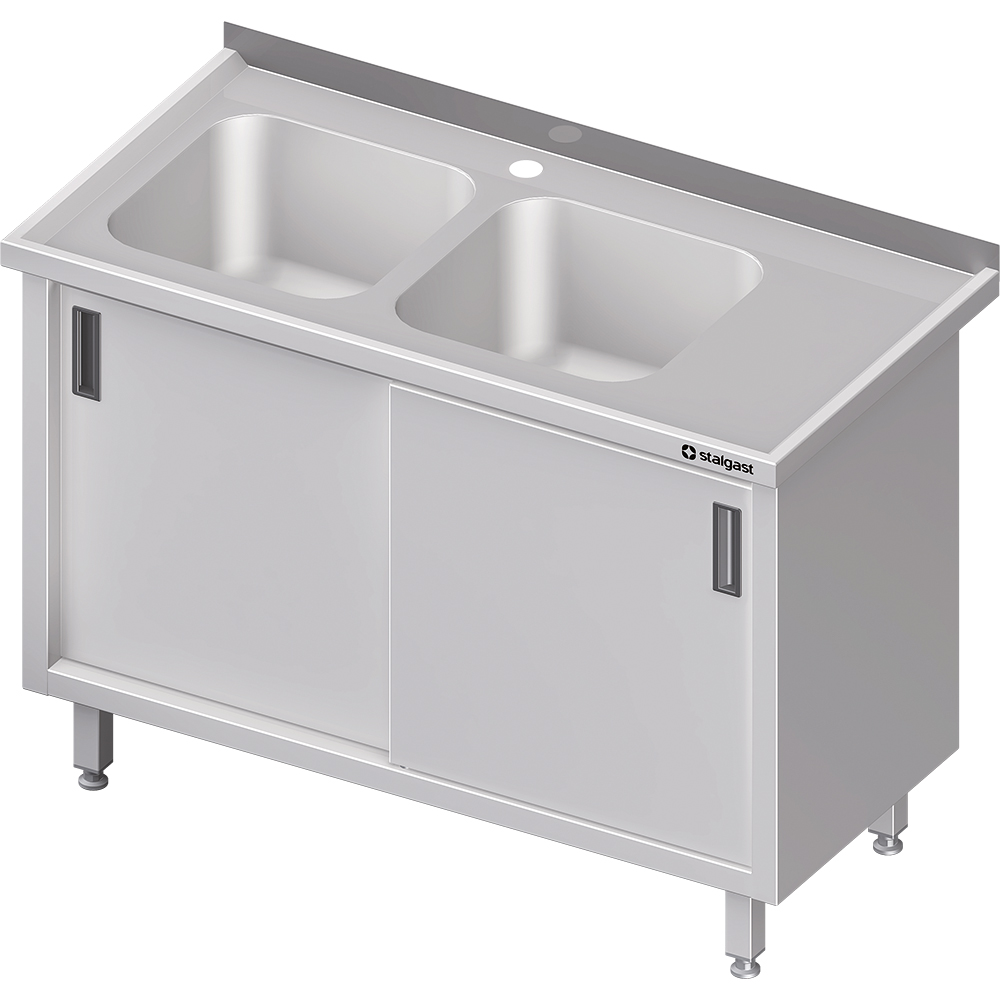 Stół ze zlewem 2-komorowym (L), drzwi suwane | Stalgast