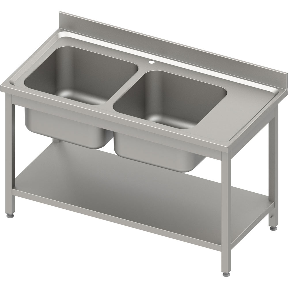 Stół ze zlewem 2-komorowym (L), z półką, skręcany, blat tłoczony, rant puszkowy 100x15x10 | Stalgast