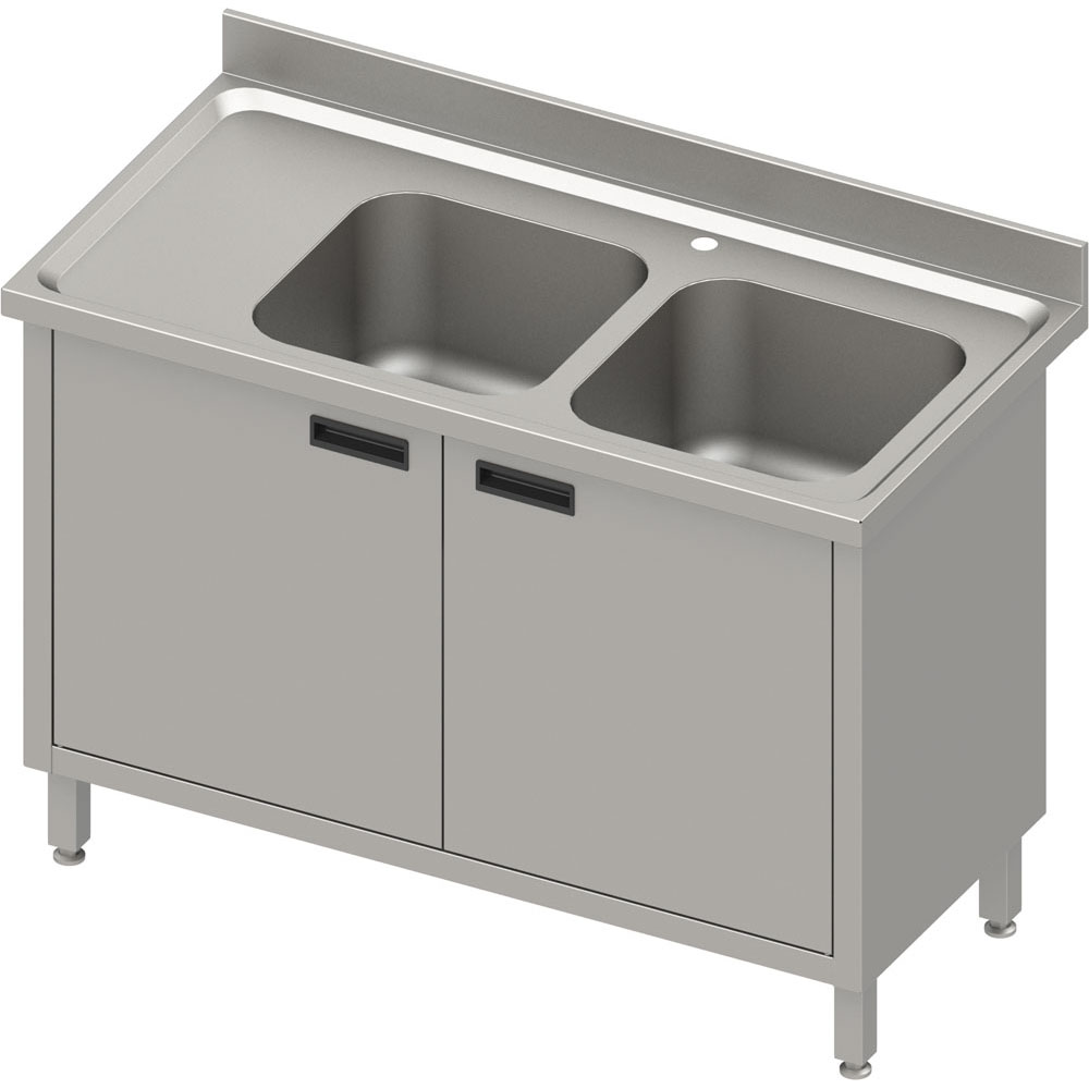 Stół ze zlewem 2-komorowym (P), drzwi skrzydłowe, blat tłoczony, rant puszkowy 100x15x10 | Stalgast