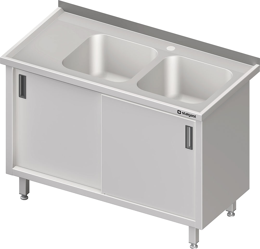 Stół ze zlewem 2-komorowym (P), drzwi suwane | Stalgast