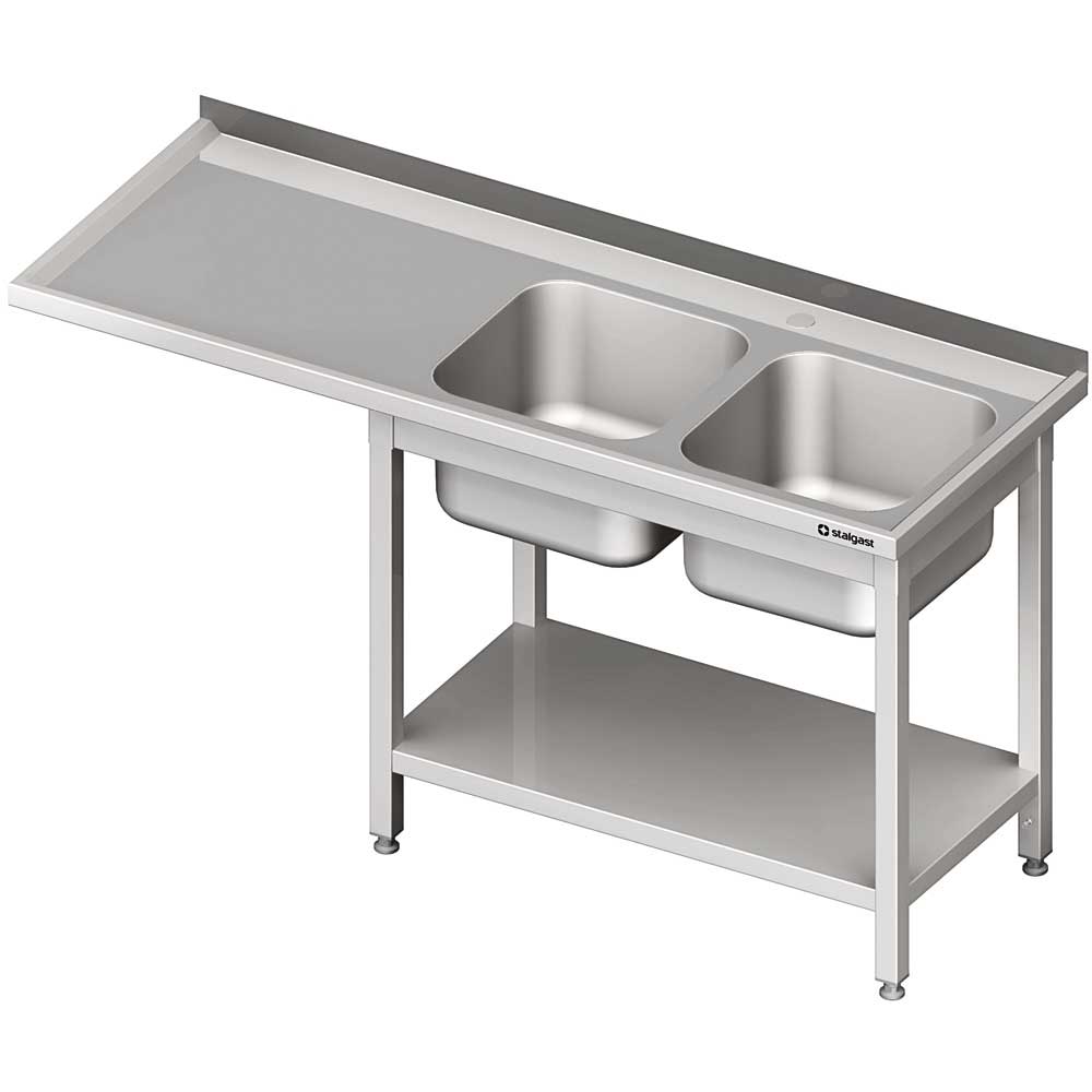Stół ze zlewem 2-komorowym (P) i miejscem na lodówkę lub zmywarkę H=900mm | Stalgast