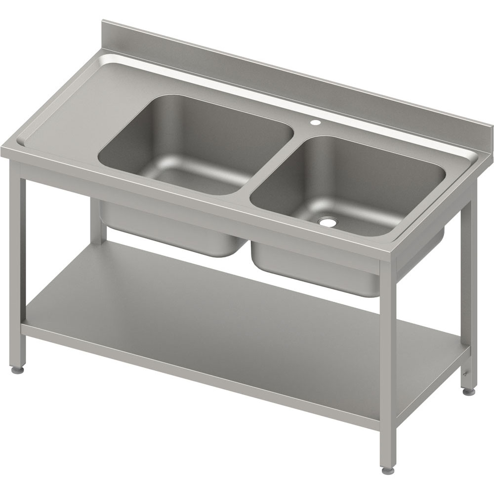 Stół ze zlewem 2-komorowym (P), z półką, skręcany, blat tłoczony, rant puszkowy 100x15x10 | Stalgast