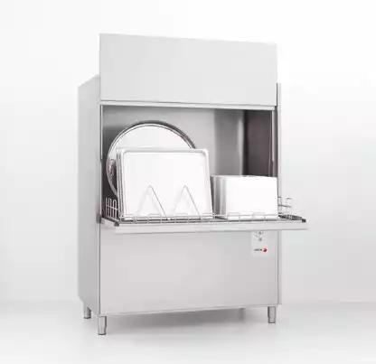 5″ podświetlany wyświetlacz LCD w kolorze. Maszyna posiada zintegrowaną podwójną ściankę. Wyciszone i odporne na ciepło drzwi z podwójną ścianką. Filtr powierzchniowy zbiornika ze stali nierdzewnej, zatrzymujący grubsze zanieczyszczenia. Filtr ssący pompy z polipropylenu, który zatrzymuje najlżejsze zanieczyszczenia, chroni pompę myjącą. Dwie pompy myjące z podwójnym przepływem. Druciany koszyk w wyposażeniu standardowym. Maksymalna teoretyczna wydajność: 30 koszy/godzinę. Pompa płucząca, Pompa spustowa, dozownik detergentu. Rozmiar koszy: 1320x700mm. Wysokość użytkowa: 850mm.