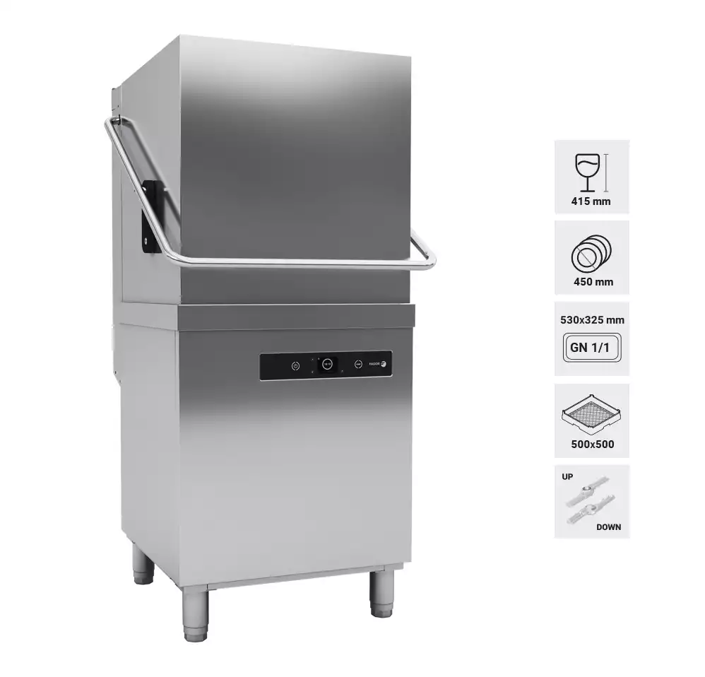 Zmywarka kapturowa 500×500 Concept + z pompą płuczącą, inteligentnym zmiękczaczem i pompą spustową | Fagor WHP-503 S B D