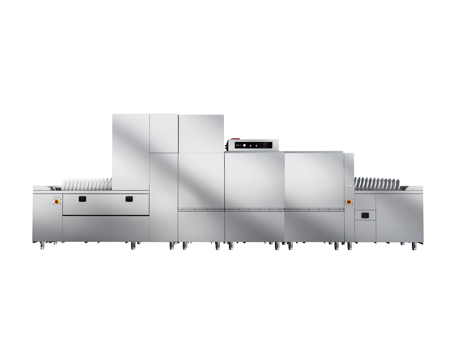 Wymiary użytkowego otworu wejściowego 630 x 440 mm. Moduł antyrozbryzgowy na wejściu. Sekcja załadunku (1.2 m) i sekcja rozładunku (2.2 m), o wysokości 900 mm, ze standardową taśmą na naczynia i tace o szerokości 600 mm. Standardowo tunel suszący o dużej mocy z możliwością dodania do 2 modułów EXTRA. Adaptacyjny system płukania końcowego z pompą płuczącą i zbiornikiem, który dostosowuje się do wszystkich prędkości. Otwarty bezciśnieniowy bojler z zastosowaną pompą płuczącą zapewnia stałe ciśnienie wody przy płukaniu. Moduł podwójnego płukania ze zbiornikiem płukania wstępnego i zasadniczego z bojlera. Automatyczne wykrywanie naczyń za pomocą fotokomórki. Regulowany system odsysania pary zmniejszający wydostawanie się pary. Kurtyny oddzielające poszczególne sekcje myjące wykonane są z materiału o wysokiejwytrzymałości na oddziaływanie środków chemicznych i wysokich temperatur. Włączniki stop / start na wejściu i wyjściu. Ramiona mycia wstępnego i mycia właściwego wykonane są ze stali nierdzewnej o konstrukcji łatwej do zdemontowania i mycia. Potrójna filtracja w modułach myjących. Profilowane dno zbiornika gwarantuje całkowite opróżnienie i umożliwia czyszczenie. Standardowy system odzyskiwania energii, redukuje zużytą energię o około 9 kWh. Automatyczny system podgrzewu wstępnego. Moduł płukania ze zbiornikiem do płukania wstępnego i bojlerem do płukania końcowego. Elektroniczna kontrola temperatury wody mycia, mycia wstępnego i płukania. Termostat bezpieczeństwa. 3 programy mycia. Spełnia normę DIN 10534 (progr. 1). System ANTI-BLOCK z odwróceniem kierunku ruchu taśmy transportowej. Czujnik wykrywający naczynia, powodujący zatrzymanie taśmy i ponowny start po odbiorze naczyń. Drzwi z czujnikami otwarcia zatrzymującymi urządzenie. Napęd taśmy silnikiem z motoreduktorem o mocy 0,25 kW sterowany falownikiem. Standardowe wyposażenie: 2 x CT-10, 2 x CV -16/105 i 1 kosz do sztućców.ZAŁADUNEK Z PRAWEJ STRONY URZĄDZENIA.